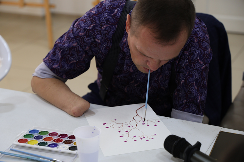 Ребята попытались выразить свои чувства с помощью красок, погрузившись в процесс творчества и самовыражения. Помощником художника выступила жена Ольга, которая с психологической точки зрения прокомментировала каждый рисунок. «Пока человек не попробует что-то сделать, он не должен говорить, что не умеет», – делился с участниками мастер-класса Евгений Викторович.