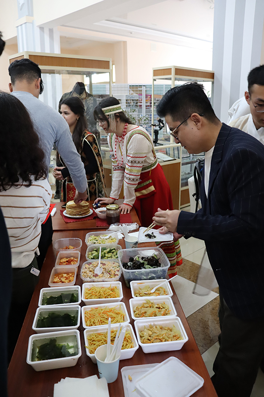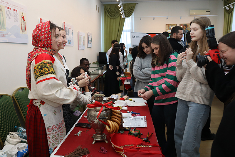Иностранные студенты приняли участие в мастер-классах, подготовленных студентами РГУ имени С.А. Есенина. Они приобщались к русской культуре и мастерили куклы-обереги, знакомились с китайскими иероглифами, писали добрые слова и пожелания на армянском языке. Гости смогли также попробовать традиционные русские блины, армянские сладости, выпечку и китайские национальные блюда. Настоящим подарком для всех собравшихся стал творческий концерт.