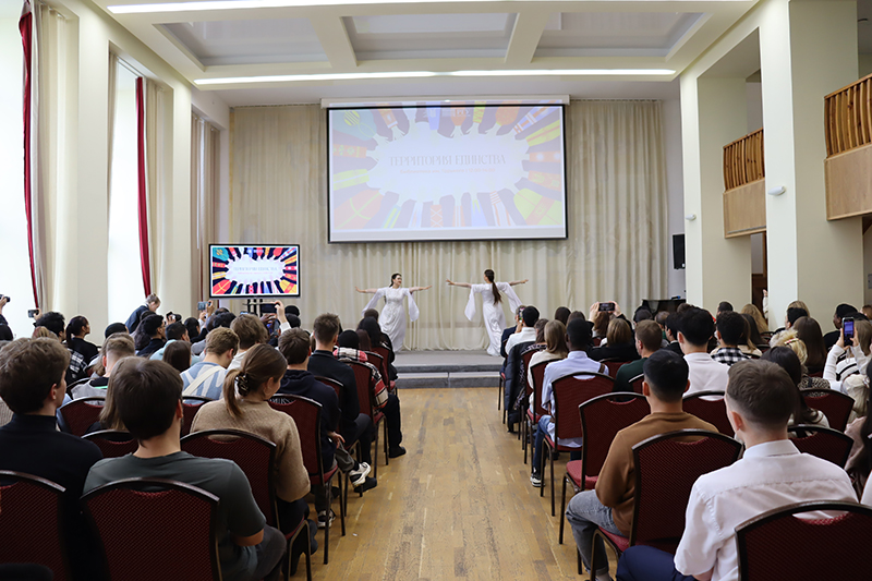 В преддверии Дня народного единства площадки нашей библиотеки объединили иностранных студентов рязанских вузов на праздничном событии, организованном Центром творчества и молодежных инициатив Рязанского государственного университета имени С.А. Есенина. Участниками мероприятия стали представители Рязанского государственного медицинского университета имени академика И.П. Павлова, Рязанского государственного радиотехнического университета имени В.Ф. Уткина, Рязанского института (филиала) Московского политехнического университета, Рязанского государственного университета имени С.А. Есенина.