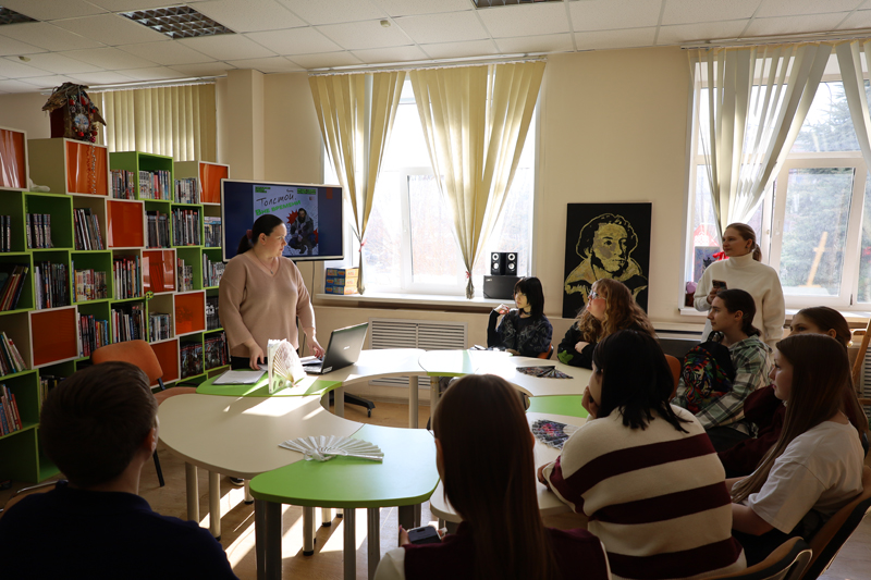 25 марта для студентов Рязанского технологического колледжа сотрудники Рязанской областной универсальной научной библиотеки имени Горького провели литературный маршрут «Толстой. Вне времени». Мероприятие было организовано в рамках программы «Пушкинская карта».