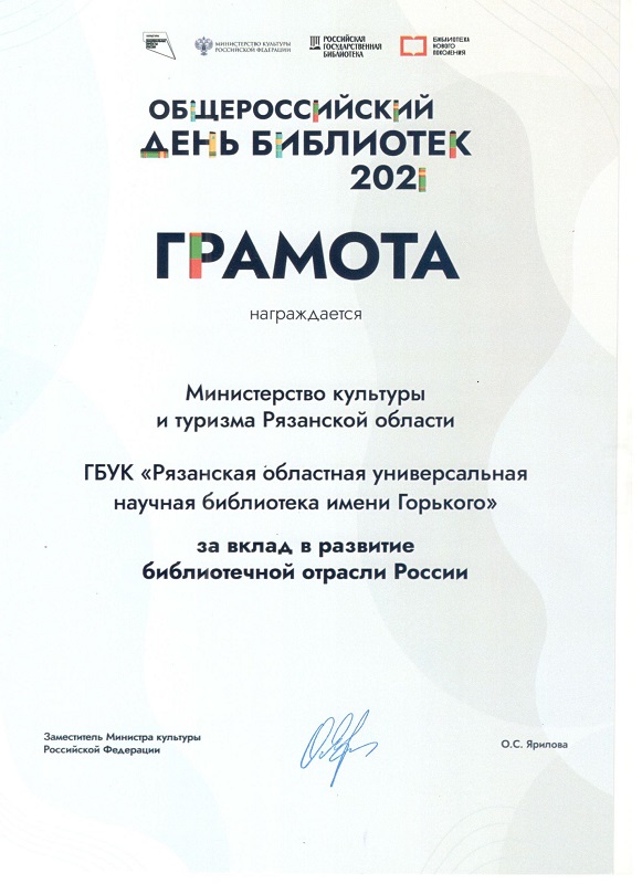 Сегодня в Рязанской областной универсальной научной библиотеке имени Горького состоялось областное мероприятие, посвященное Общероссийскому дню библиотек.