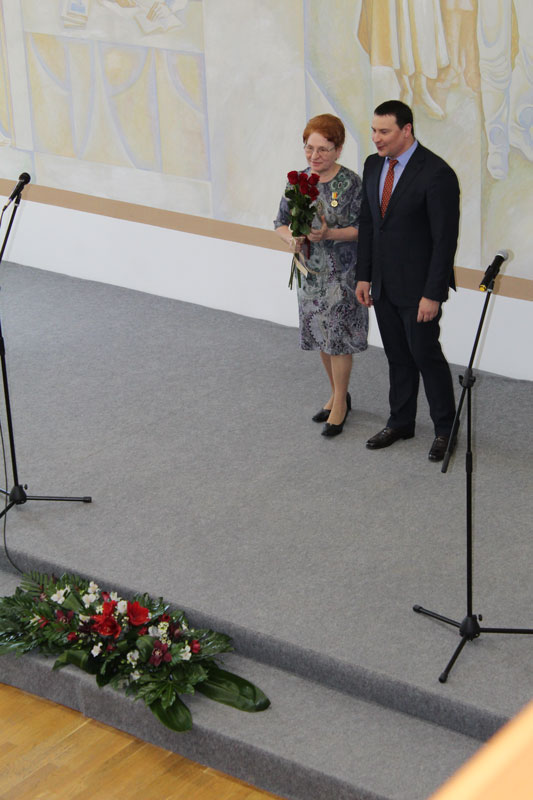 Заместитель председателя правительства Рязанской области Л.А. Крохалева поздравила библиотеку-юбиляра по поручению губернатора Н.В Любимова и вручила директору библиотеки Н.Н. Гришиной сертификат на приобретение книг. Трудовые заслуги двух сотрудников библиотеки им. Горького региональное правительство отметила особо. Почетным знаком «За заслуги перед Рязанской областью» награждена главный библиотекарь Центра консервации библиотечных фондов Л.П. Макарова. Заведующей отделом организационно-методической и образовательной деятельности Г.А. Долотиной присвоено звание «Почетный работник культуры и искусства Рязанской области».