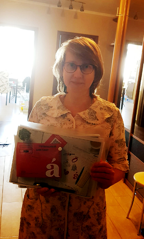 Первым участникам «Тотального диктанта» в формате #пишемдома были доставлены специальные бандероли с комплектом бланков для каждого, например, бланки в косую линейку для младших участников.