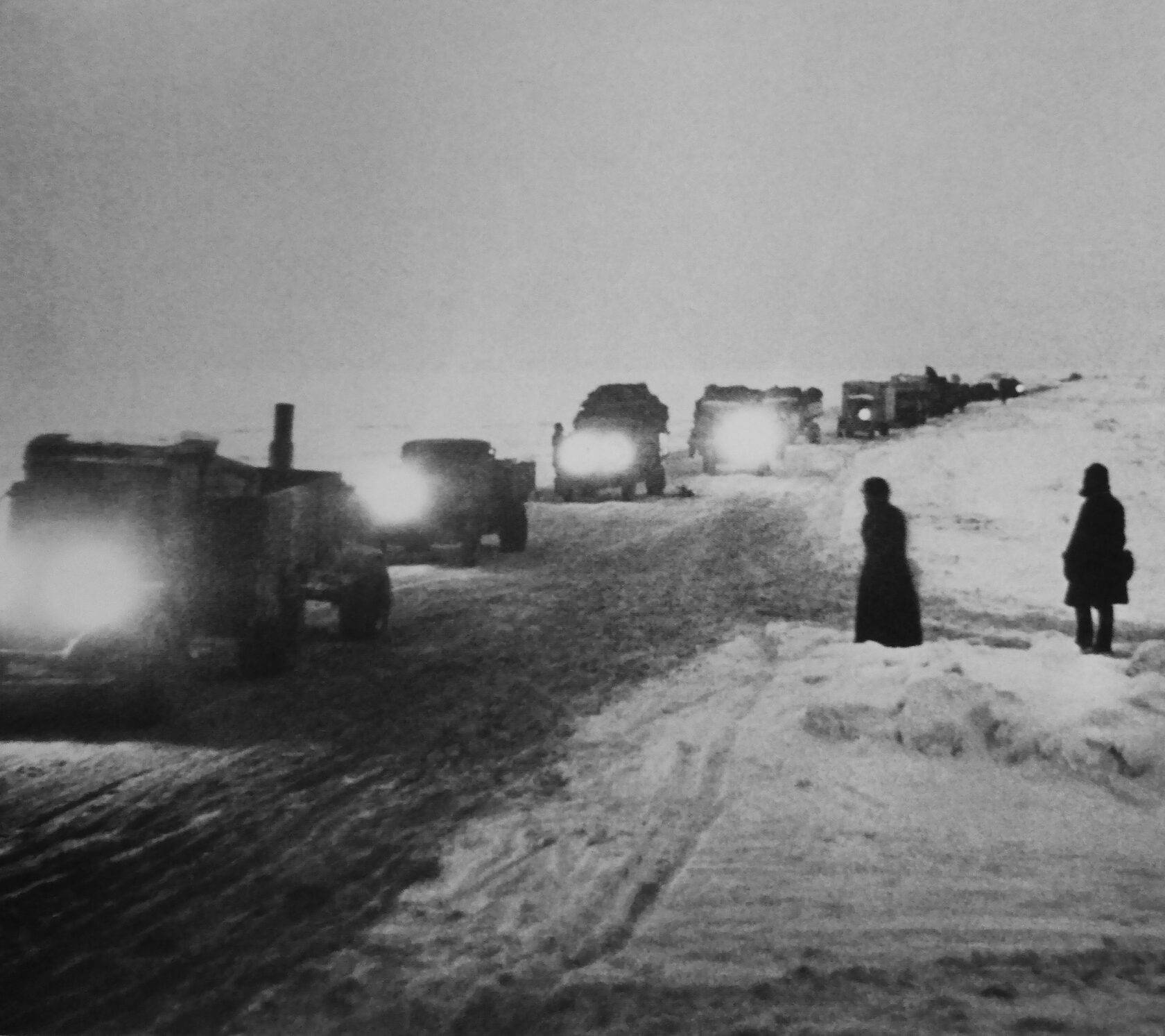 По самому первому льду, сковавшему Ладогу уже в первой половине ноября, сначала пошли упряжки лошадей с обозами, на которых в Ленинград везли мешки с мукой. А к 22 ноября лёд окреп настолько, что уже мог выдержать вес машин, – это число и стало официальной датой открытия ледовой Дороги жизни.