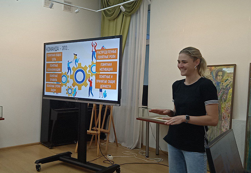 9 октября состоялись второй и третий образовательные тренинги на темы «Команда» и «Работа с командой» для участников образовательного интенсива «Академия Добра». Лекцию провела тренер Рязанского тренингового центра РСМ Мария Косухина.