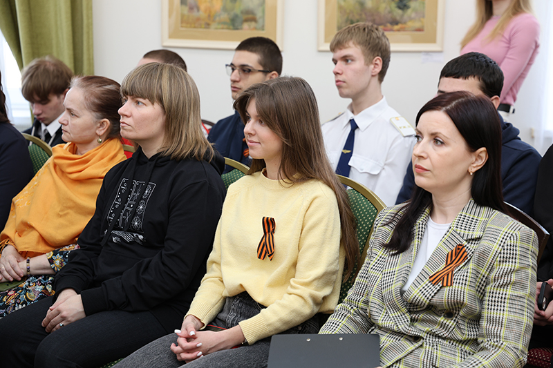 Директор библиотеки, председатель Общественной палаты Рязанской области, заслуженный работник культуры РФ Наталья Николаевна Гришина в своем приветственном слове отметила, что в России нет ни одной семьи, которой не коснулись бы страшные события военных лет. Очевидцами этих событий были и художник Анатолий Лыкин, и писатель Борис Жаворонков. Наталья Николаевна была лично знакома с Борисом Ивановичем и рассказала рязанским студентам, каким интересным, неравнодушным человеком он был.