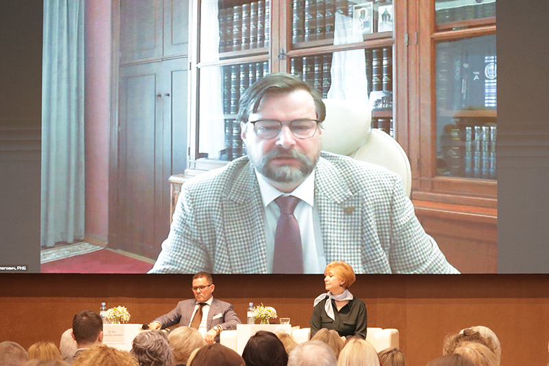 Приоритеты развития библиотечного дела страны обозначил в своем докладе генеральный директор РГБ Вадим Валерьевич Дуда: модернизация библиотек; креативные индустрии, отрасли экономики России, в которых библиотеки могут принести особую пользу; федеральный проект «Гений места»; использование искусственного интеллекта и нейросетей. Единодушное одобрение присутствующих получил тезис докладчика о необходимости обновления библиотечных фондов, как важнейшего фактора преобразований библиотечной сферы страны. Основные положения выступления – «Библиотека – это книжное убежище», «Книги – ядро культурного наследия и вековых знаний» – звучали как лозунги и были подкреплены анализом современных трудностей и путей их преодоления. Много внимания было уделено в докладе вопросам интеграции библиотек новых регионов в культурное пространство России. Руководитель главной библиотеки страны призвал сформировать крупные методические центры в Донецке и Луганске.