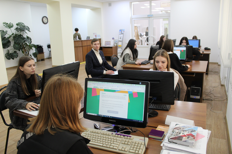 С 9 по 13 октября компьютеры библиотеки будут предоставлены студенческим группам железнодорожного, политехнического, медицинского колледжей и колледжа электроники. Станкостроительный колледж проведет Цифровой диктант на своей площадке.