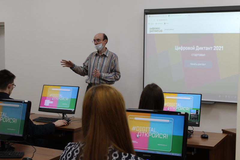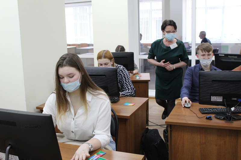 Организова в зону «Цифрового диктанта – 2021» для приглашенных групп, мы на прошедшей неделе приняли у себя девять групп: студентов и школьников из РГУ им. С.А. Есенина, Московского университета им. В.Я. Кикотя, Железнодорожного техникума, Колледжа электроники, Политехнического колледжа; старшеклассников средних школ №№ 7 и 8. Студенты Технологического колледжа, согласившись участвовать в диктанте, писали его на своей базе. Группа людей в возрасте 60+, подчиняясь коронавирусным ограничениям, выполняют задания диктанта дома.