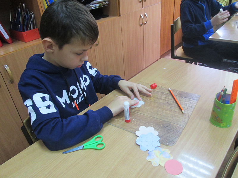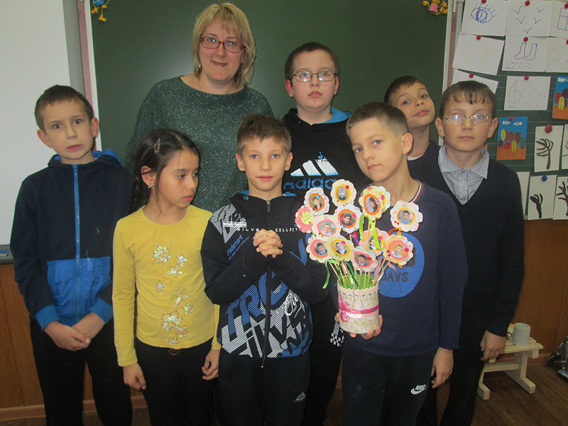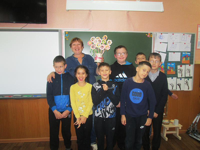 Ребята с удовольствием и старанием вырезали из бумаги цветы, делали заготовки для будущего букета, подбирали цвет и декоративные элементы, украшая свою поделку. Во время мастер-класса мальчишки и девчонки превратились в одну сплоченную команду, которая дружно и весело работала над общим делом. Результат своего труда понравился всем без исключения. Особый восторг этот необычный подарок вызвал, конечно, у любимого учителя третьеклассников – Марины Николаевны Кирилиной.