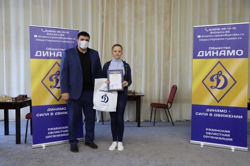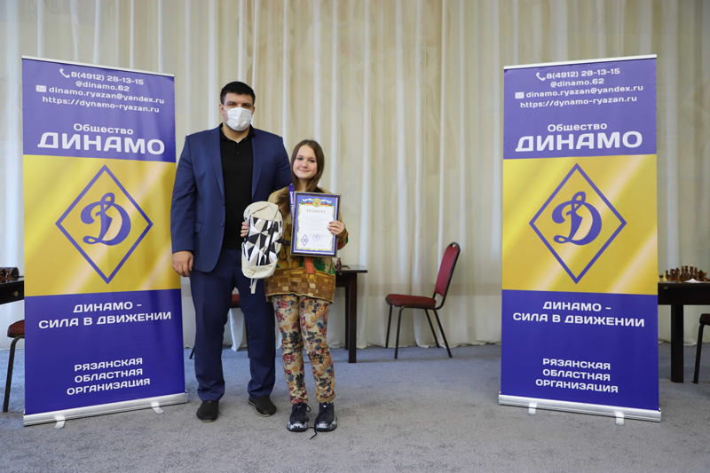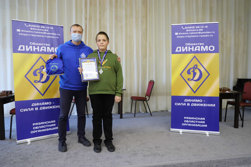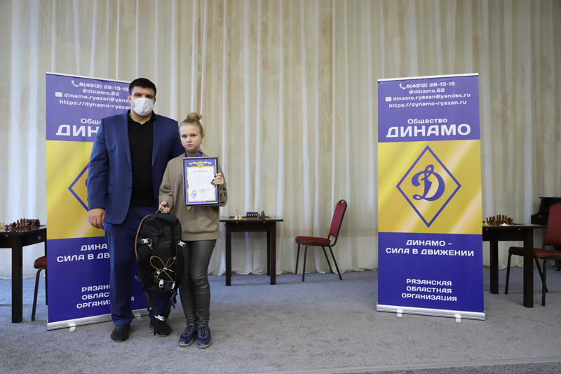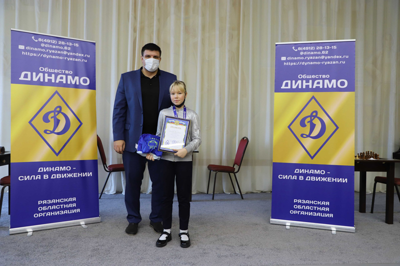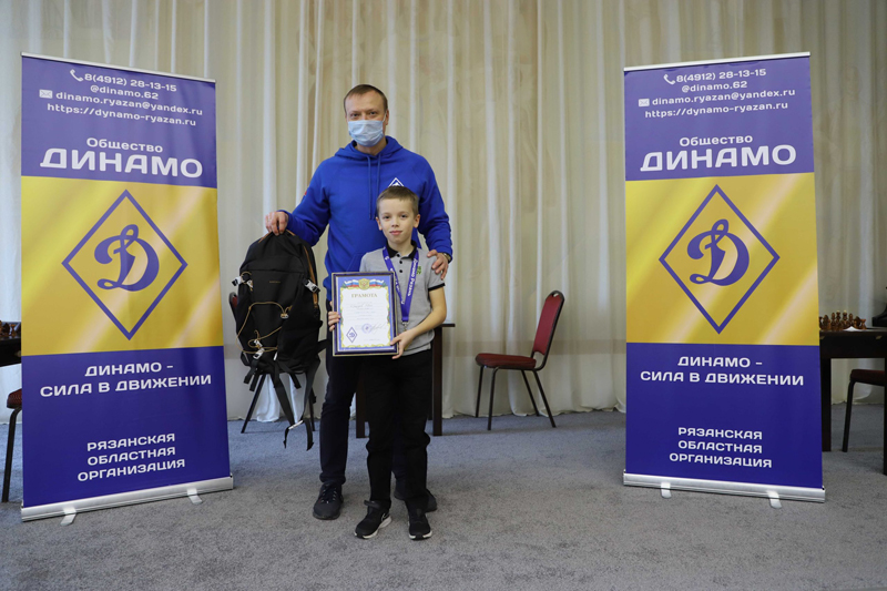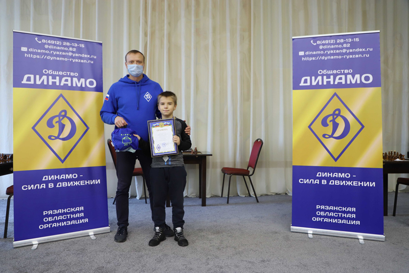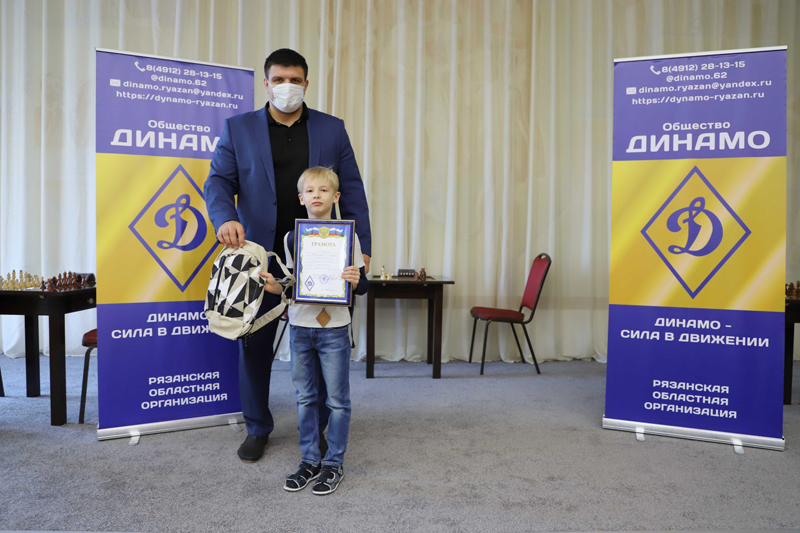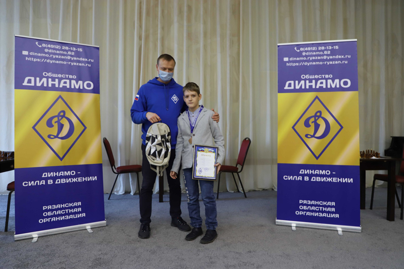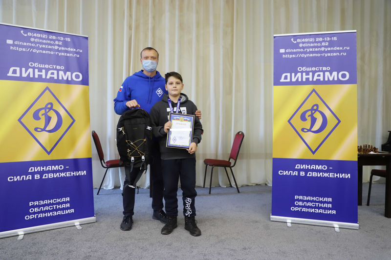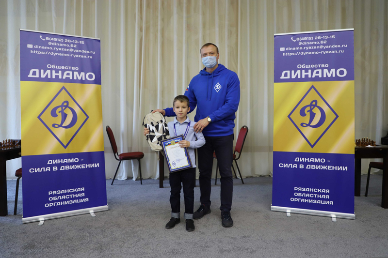 По окончании Турнира все участники получили от Рязанской областной организации Общества «Динамо» сладкие призы, победители, призеры и победители в номинациях были награждены медалями, грамотами и ценными подарками, которые вручали заместитель председателя РОО Общества «Динамо» Андрей Волков и почетный гость турнира мастер ФИДЕ Андрей Соколов.