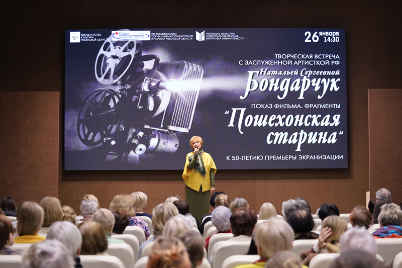 Наталья Сергеевна Бондарчук после показа фрагментов фильма поделилась со зрителями воспоминаниями о работе над картиной, размышлениями о русской классике и экранизации литературного наследия.