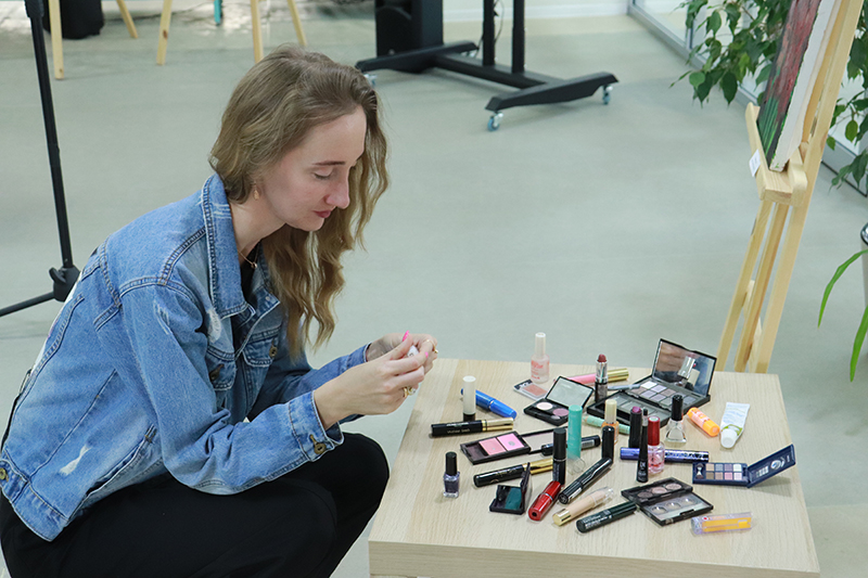Уникальная выставка картин, созданных из бывшей в употреблении декоративной косметики, была подготовлена волонтерами, художниками и дизайнерами.