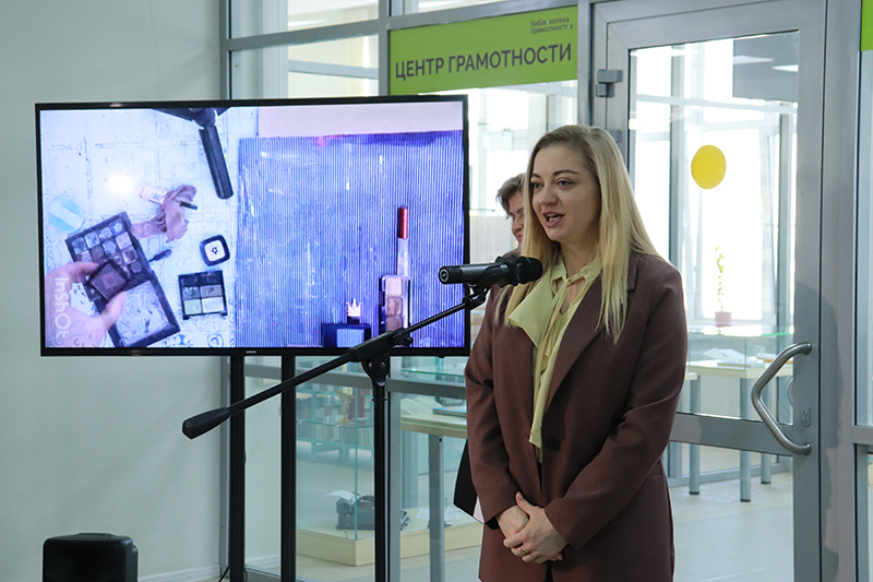 С приветственным словом выступила заместитель директора по социокультурной деятельности и связям с общественностью библиотеки имени Горького Ксения Александровна Чулкова.