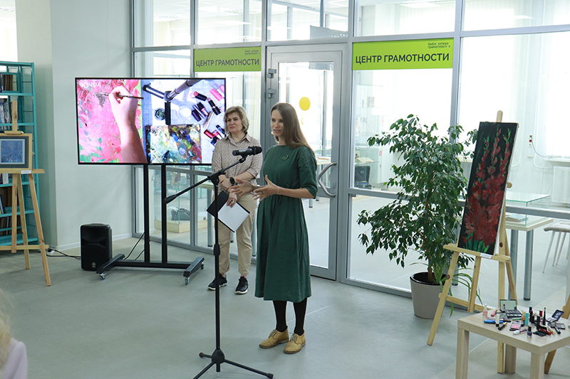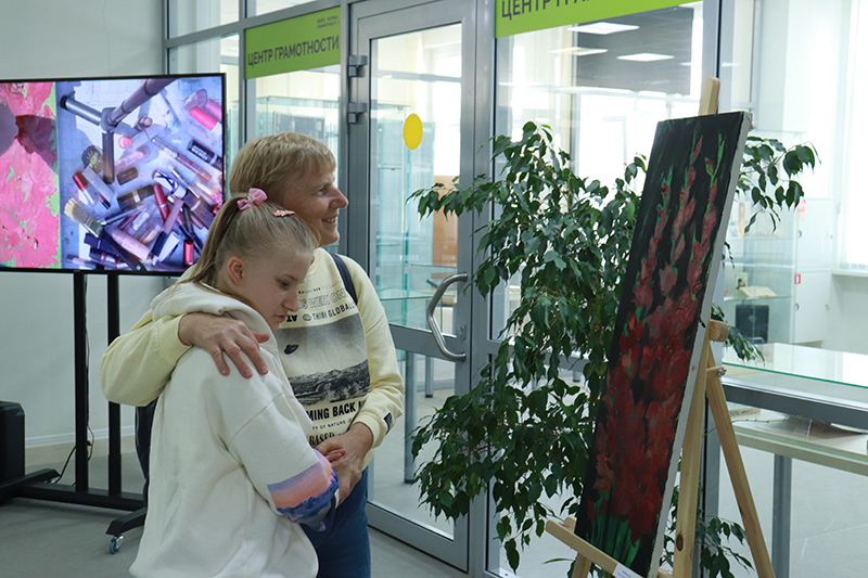 В библиотеке имени Горького состоялось открытие интерактивной выставки экокартин «Новый взгляд» художницы Анастасии Гришиной.