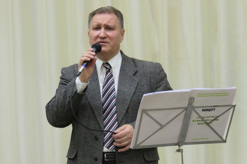 Более двух часов продолжался праздник. Виновник торжества продемонстрировал все грани своего творчества. В первом блоке программы прозвучала яркая композиция, наполненная стихами, романсами известных отечественных и зарубежных авторов, песнями собственного сочинения («День рождения», «Россия», «Хороши весной в саду цветочки», «Дорогой длинною», «Я встретил девушку», «На качелях», «Мой дом – Россия!»). На фоне видеоряда фотографий из семейного альбома и тематических заставок все воспринималось по-особому тепло и проникновенно.
