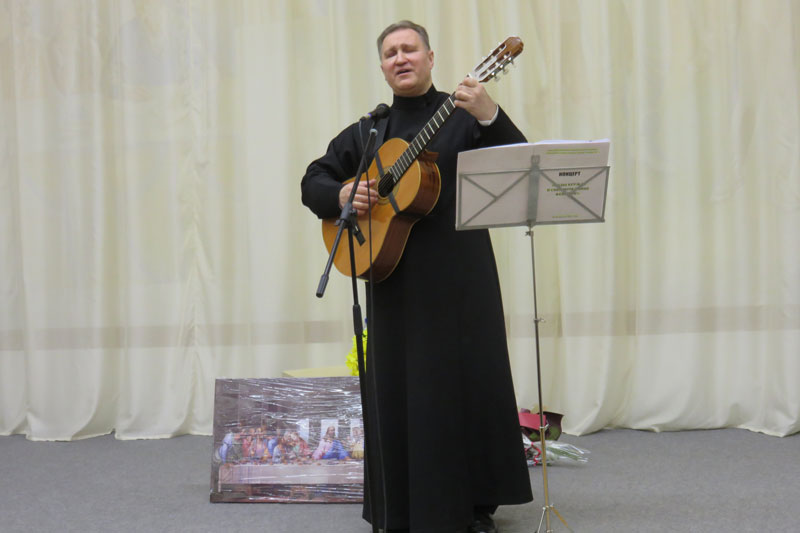 Второй блок мероприятия включал в себя духовные песнопения и канты. Светло и возвышенно лились прекрасные мелодии в исполнении юбиляра (соло) и квартета священнослужителей (под управлением Александра Костенко): протоиерей Димитрий Челноков, иерей Владимир Любимский и протодиакон Анатолий Ковшиков. Они исполнили произведения: «Белый храм», «Молитва св. Николая», «Малое славословие», «Песнь о матери», «Ромашка белая», «Вера, Надежда, Любовь»). Завершилась программа исполнением «Многолетия».