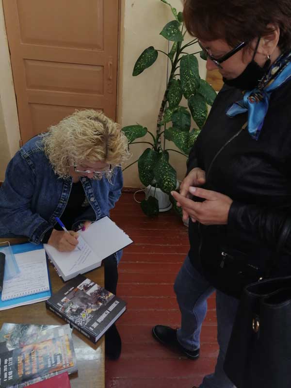 В завершение мероприятия в дар библиотеке Наталья Чернецкая подарила книги с автографами авторов. Все желающие смогли приобрести книгу и получить автограф у Ирины Горбань.