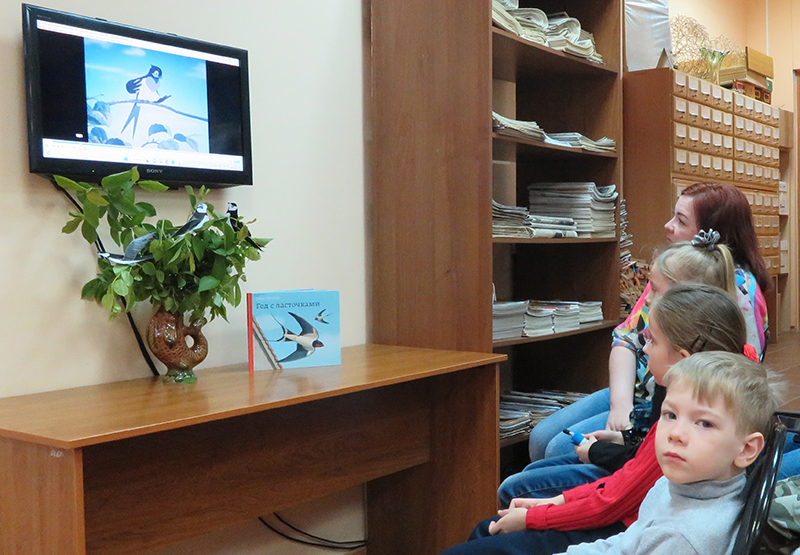 Сотрудник кафедры детской литературы рассказала о характере и образе жизни ласточек и провела обзор книг об этих удивительных птицах. Ребята с удовольствием посмотрели добрый советский мультфильм «Высокая горка» про наших пернатых друзей.