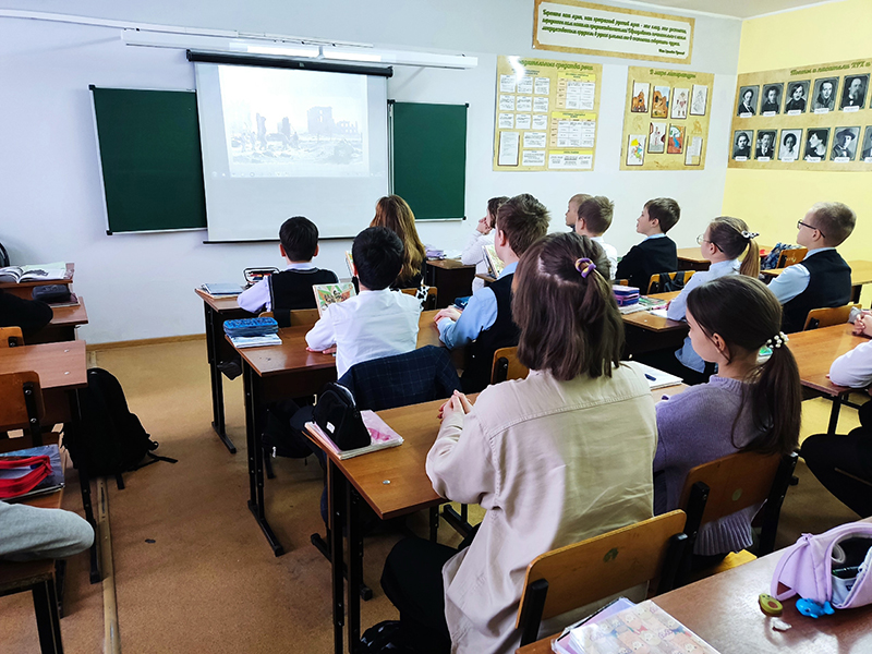 Пятиклассники школы № 73 узнали о ходе Сталинградской битвы, о массовом героизме людей, проявивших в жестоком сражении самоотверженность, силу, волю и беззаветную преданность Родине. Час мужества сопровождался показом слайд-презентации, чтением стихотворений и завершился просмотром иллюстрированных материалов о Мамаевом кургане, увековечившем подвиг героев Сталинградской битвы.