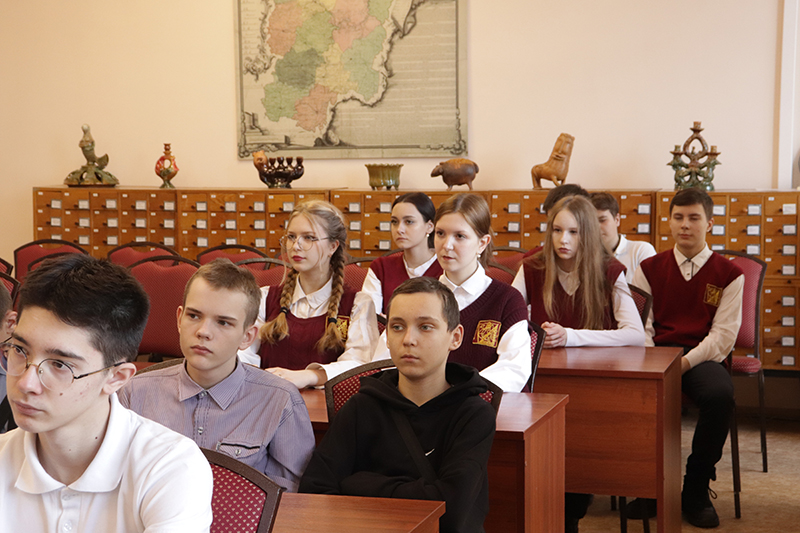 Екатерина Викторовна раскрыла темы исследований членов комиссии – церковная история, история крепостного права, топонимика, археология и другие. Она задавала вопросы, на которые ребята охотно отвечали.