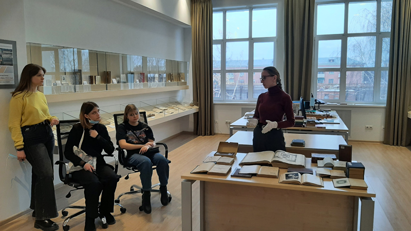 Особый интерес у экскурсантов вызвало посещение Центра редких и ценных изданий, где будущим журналистам рассказали о том, как проходит отбор редких книг, как организуют их реставрацию и хранение; показали удивительные экземпляры книг – от самых старых до новейших изданий. Большую заинтересованность вызвала книга, напечатанная в 1670 году на французском языке.