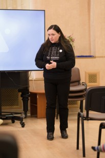 Наталия Вячеславовна выступила в рамках круглого стола «НЕпотерянное поколение». В докладе представила успешный опыт работы клубного формирования «Любительский театр “Атмосфера”» библиотеки имени Горького, продемонстрировав, как творческая деятельность способствует личностному росту и развитию людей в возрасте от 40 до 50 лет, чьи потребности не охватываются существующими программами поддержки, такими как «Пушкинская карта» или «Активное долголетие».