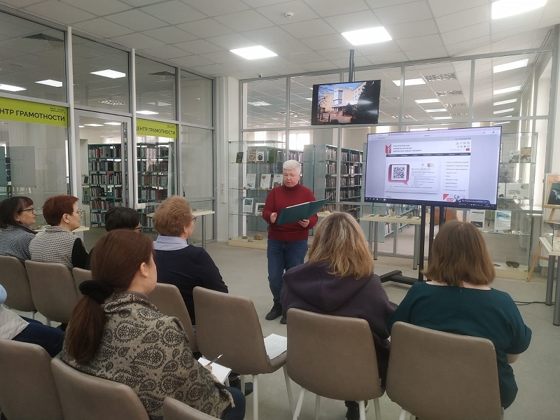27 марта сотрудники библиографического центра провели очередное занятие для дежурных библиографов. На учебе присутствовало 17 человек. Лариса Васильевна Живанова, главный библиограф библиографического центра, напомнила дежурным справочного зала о ведении тетради учета справок, тетради учета отказов, об адресной справке. Главный библиограф библиографического центра Елена Михайловна Кириллова сделала обзор существующих в библиотеке ресурсов удаленного доступа и рассказала о новых.
