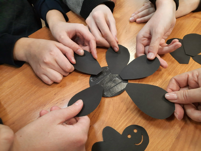 Во время занятия они создали "Цветок дружбы", сделали недостающих героев для кукольного спектакля, выбрали декорации и даже успели провести первую репетицию спектакля. Время за любимым делом пролетело незаметно и очень продуктивно.