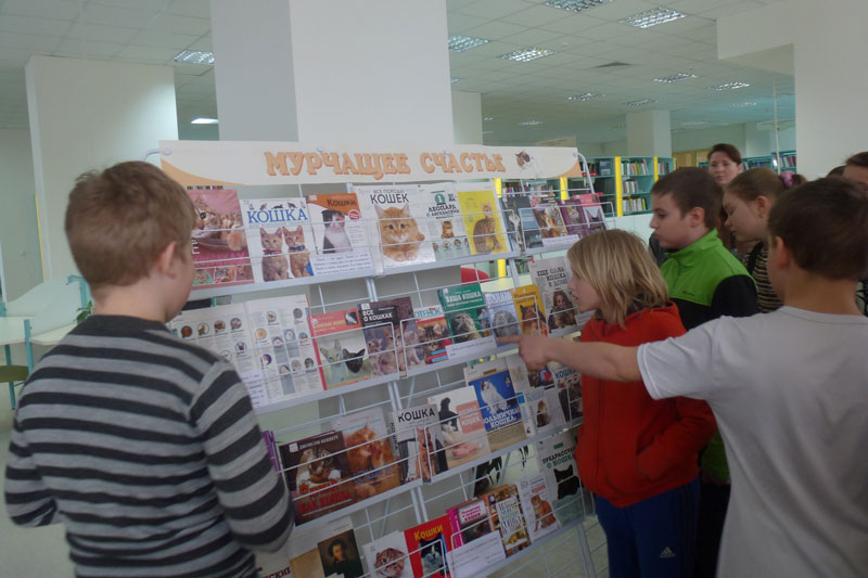 Для гостей была проведена ознакомительная экскурсия по библиотеке, в ходе которой они посмотрели разнообразные выставки, в том числе, приуроченные к Году экологии: «Вода мира и мир воды», «Тропинками родного края», «Мурчащее счастье». Особенно школьников заинтересовали оригинальные тематические мини-книги, сделанные их рязанскими сверстниками в рамках участия в городском экологическом конкурсе лэпбуков «Тропинками родного края».