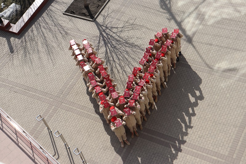 В акции приняли участие юнармейцы, учащиеся школ №40, №46 и воспитанники детско-юношеского центра «Звезда». Перед входом в областную библиотеку ребята выстроились в виде букв «V» и «Z», для того, чтобы выразить свою гражданскую позицию и поддержку Президента России, российских военнослужащих – участникам специальной военной операции на Донбассе. В акции были представлены издания книг «Солдаты Победы. 1941-1945 гг.».