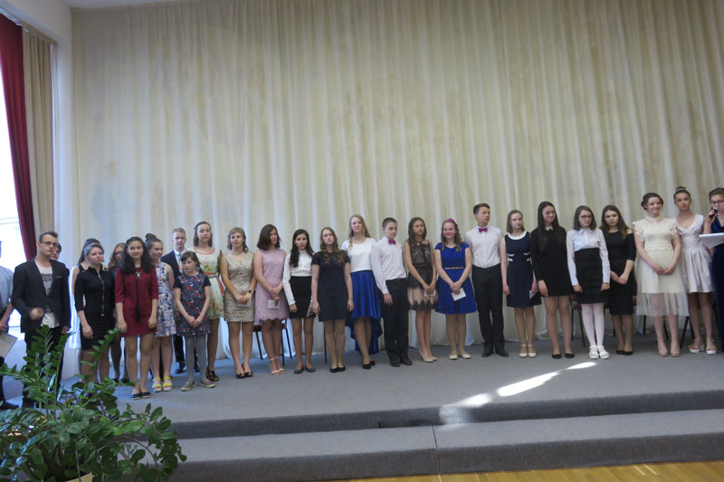 В заключение торжества состоялась небольшая концертная программа с участием лучших выпускников, показавших свои музыкальные достижения. Прозвучали: «Романс» А. Аренского (София Малыхина), «Серенада» С. Майкапара (Анастасия Морозова), «Ноктюрн» М. Балакирева (Ирина Зерова), «Улетающие птицы» Е. Дербенко (квинтет «Гармония»), «Бурлеска» М. Товпеко и совершенно волшебное «Время сказать прощай» Ф. Сартори (Полина Белянская). Сводный хор выпускников исполнил песню «До свиданья!» (слова и музыка Е. Конновой) . На память была сделана общая фотография выпускников и преподавателей.