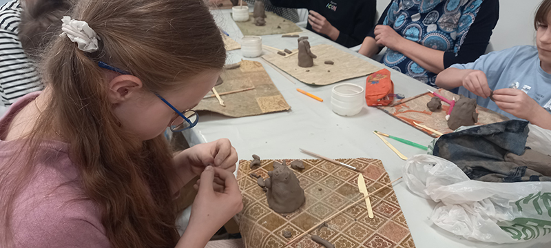 Екатерина Сизова рассказала ребятам о глине, ее особенностях и свойствах. Затем юные гончары приступили к практическому воплощению своих творческих фантазий. В маленьких ладошках кусочки глины ожили и превратились в замысловатых зверюшек, птичек и, конечно же, колокольчики.