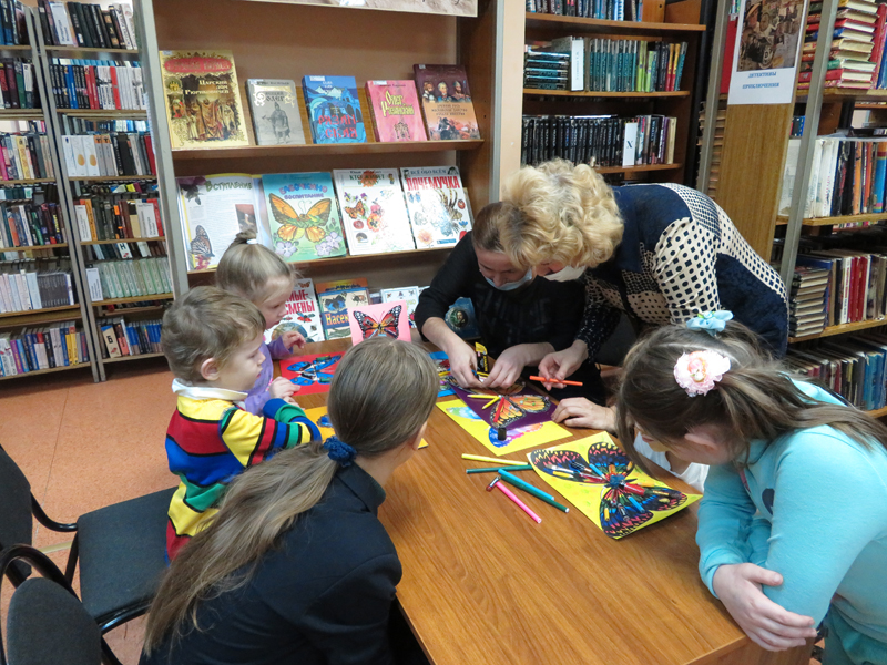 Бабочки – одни из самых восхитительных живых существ на планете. Народы связывают их с любовью, душой и возрождением. Ребятишкам клуба выходного дня «Домовенок» было предложено сделать панно-инсталляцию с изображением бабочки, используя в качестве оформления канцелярские принадлежности.