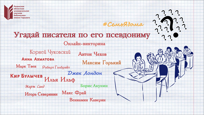 Друзья, сегодня в рубрике #СемьЯдома мы предлагаем вам онлайн-викторину на знание литературных псевдонимов знаменитых писателей и поэтов.