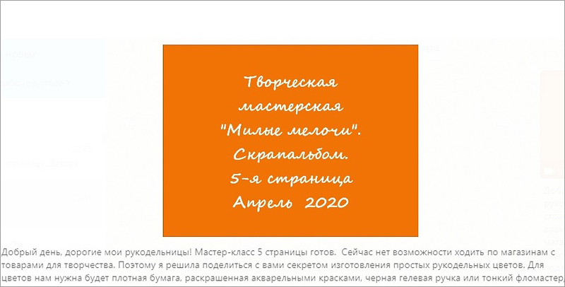 Очередной мастер-класс творческой мастерской «Милые мелочи» прошел вновь в виртуальном пространстве.