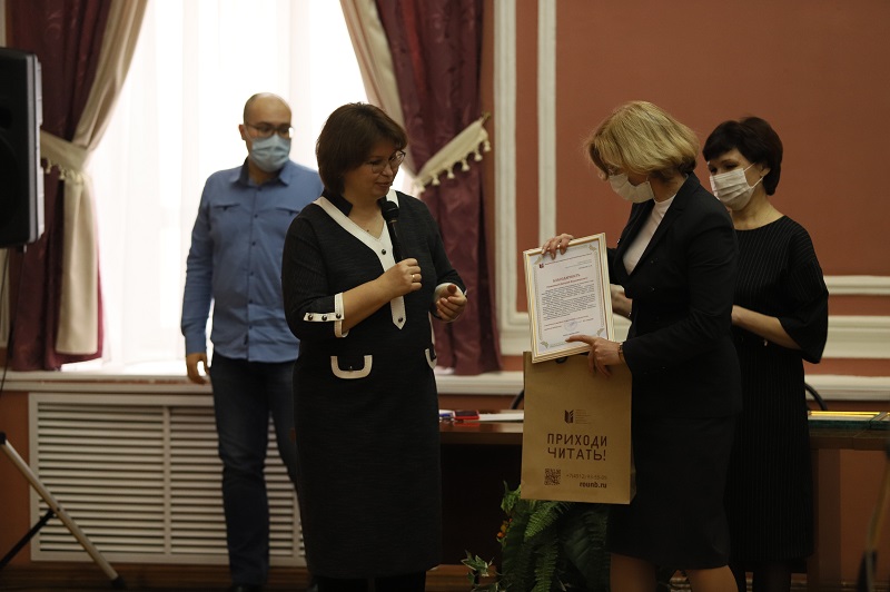 Светлана Винокурова, заместитель директора библиотеки им. Горького, поблагодарила за переданные в фонд библиотеки уникальные издания.