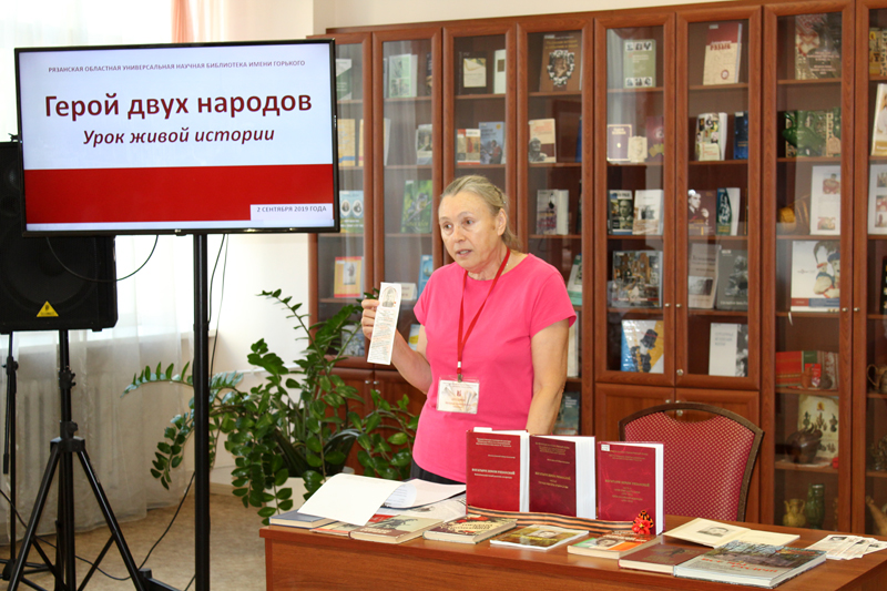На уроке живой истории ребята узнали о жизни и подвиге героя, познакомились с интересными фактами о нем, с изданиями о Полетаеве, хранящимися в фондах библиотеки. Наши юные гости получили в подарок закладки с изображениями героев-рязанцев и краткой информацией о них.