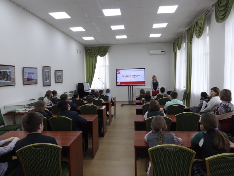 Сотрудники библиотеки провели для ребят викторину «Подвиг народа». Дети отвечали на вопросы о Великой Отечественной войне, о Ф. А. Полетаеве. Мероприятие проходило в малом конференц-зале библиотеки, где размещена выставка «Русский солдат Федор Полетаев». В завершение встречи для школьников был проведен обзор выставочного проекта.