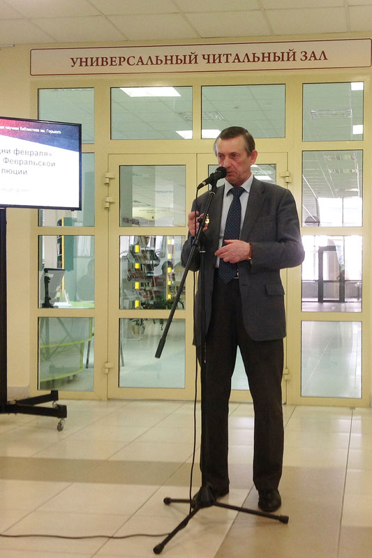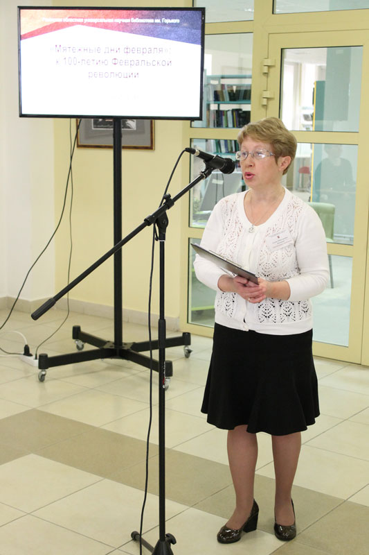 Директор библиотеки им. Горького, секретарь Общественной палаты Рязанской области Н.Н. Гришина в своем приветственном слове отметила, что тема Февральской революции не является абсолютно актуальной и ключевой, как 100 лет назад. Но недавние события в бурной политической жизни России и других стран говорят о том, что уроки истории необходимо не просто знать и помнить, а еще изучать и анализировать их, чтобы делать правильные выводы.