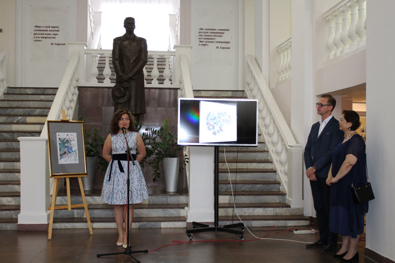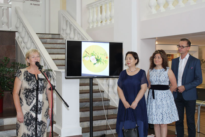 Директор Института иностранных языков Чанчуньского университета (г. Чанчунь, КНР), профессор, доктор филологических наук, ведущий ученый провинции Цзилинь Ван Цзиньлин поблагодарила библиотеку им. Горького за возможность организации выставки, рассказала о ее уникальности и выразила надежду на плодотворное сотрудничество.