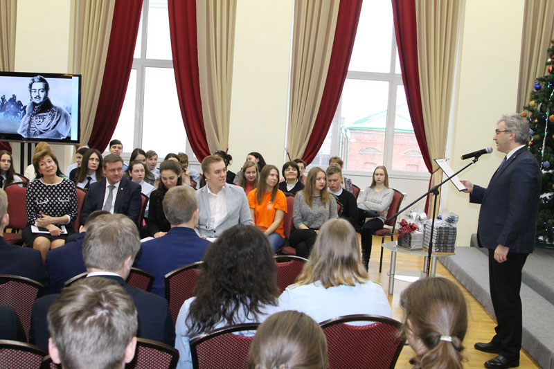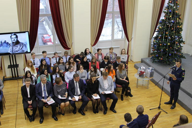 Собравшихся – членов молодежных общественных организаций, школьников и студентов г. Рязани – приветствовала Наталья Николаевна Гришина. Директор библиотеки открыла мероприятие и представила главного гостя – Губернатора Рязанской области Н.В. Любимова. Николай Викторович прочитал отрывок, ярко отражающий истоки высочайшего патриотизма поэта и воина, которого В.Г. Белинский назвал «одним из самых поэтических лиц русской армии».
