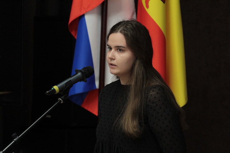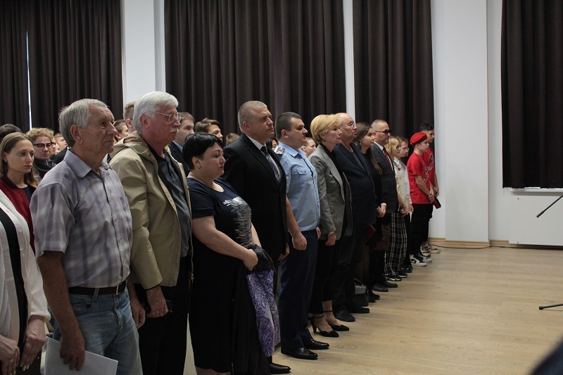 В зале присутствовала Надежда Юрьевна Богомолова, вдова Героя России Богомолова Александра Станиславовича, принимавшего активное участие в операции по спасению заложников из здания школы №1 города Беслана.