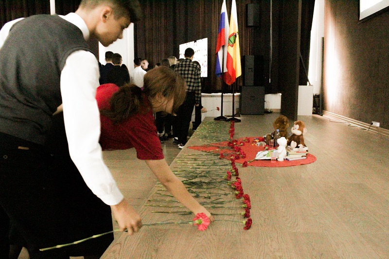 Молодые участники акции увидели шокирующие кадры видеохроники тех страшных событий и новостных репортажей.