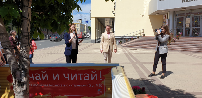 Наталья Гришина, директор библиотеки, поздравила всех присутствующих с общероссийским Днем библиотек. В своем выступлении она говорила о новых трендах и инновациях в работе библиотеки, поблагодарила рязанский филиал МТС за прекрасный подарок. Александр Ляк, руководитель компании МТС, отметил, что такие совместные проекты делают процесс чтения все более модным занятием, особенно среди молодежи. Татьяна Буркова, представитель компании, показала всем собравшимся, как можно воспользоваться сервисом и скачать на смартфон произведения русской и зарубежной классики, современных авторов, литературу на иностранных языках.