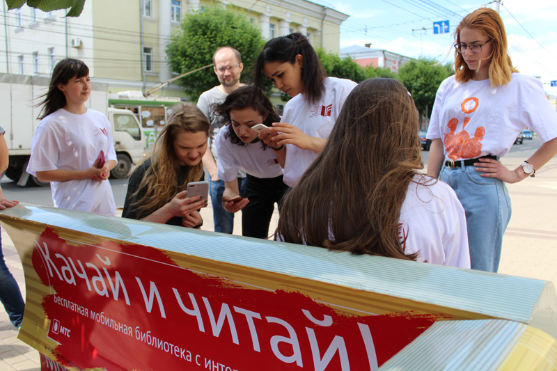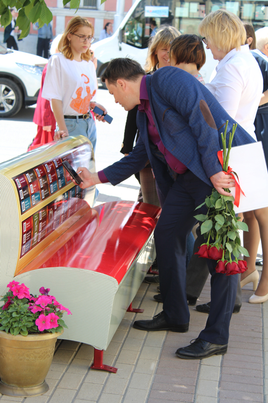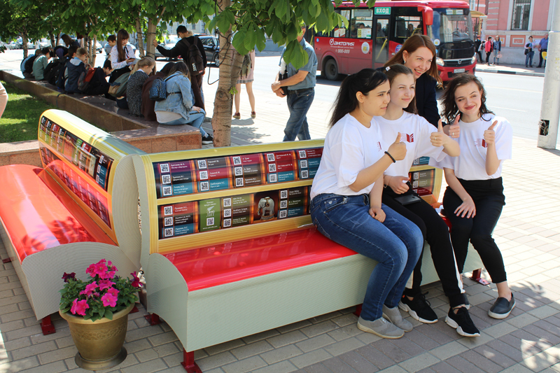Сегодня в нашем библиосквере прошла презентация еще одного совместного проекта «Горьковки» и филиала ПАО «МТС» в г. Рязани – «Литературные скамейки». Он направлен на повышение популярности чтения посредством современных технологий.