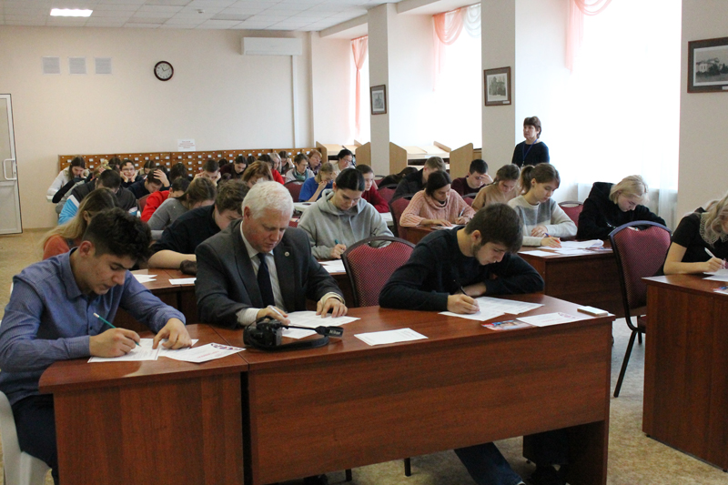 Одной из самых многочисленных площадок стала библиотека им. Горького. Диктант писали учащиеся школ и колледжей, студенты рязанских вузов, рабочие, служащие, преподаватели и пенсионеры. Участниками акции стали представители управления образования и молодежной политики администрации г. Рязани, управления культуры администрации г. Рязани, областной Думы. За 45 минут необходимо было ответить на 30 тестовых вопросов: 20 вопросов общего характера, 10 – региональных, уникальных для каждого субъекта.