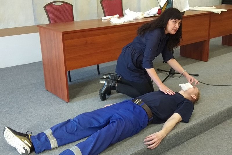 Юлия Викторовна Харлашкина, медицинский работник поликлиники №14, провела занятия с применением наглядных пособий. Полученные навыки позволят, в случае надобности, реально помочь при сердечном приступе и остановке сердца; при повреждениях различного рода, таких как раны и кровотечения, переломы, ожоги, обморожения и так далее.