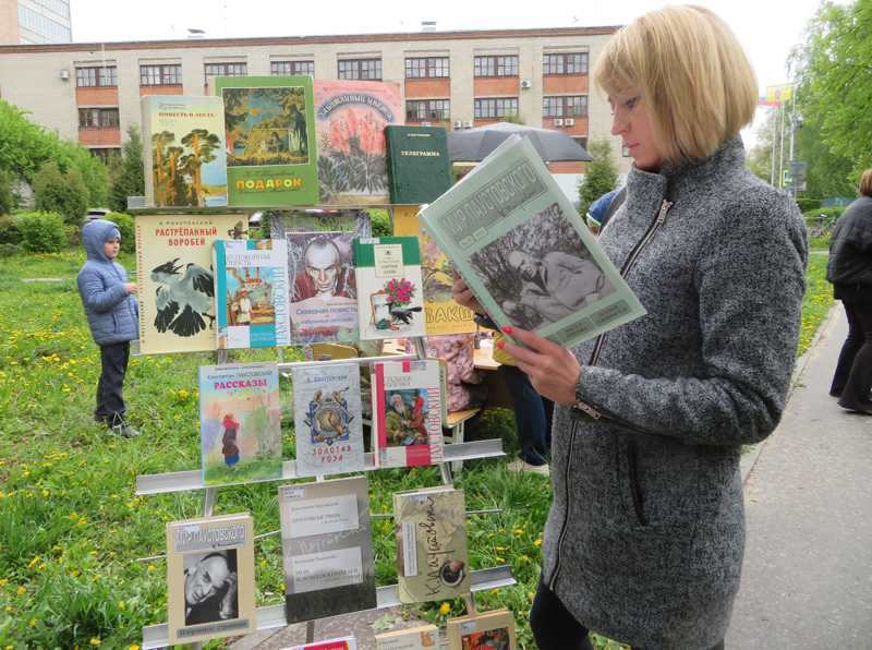 Акция продолжилась проведением викторины-лото «Наш Паустовский» и конкурсом детского рисунка «Мещерская сторона». Выставка книг, посвященная творчеству писателя, привлекла прохожих. С особым интересом горожане рассматривали юбилейный выпуск детского журнала «Путеводная звезда» и фотографии архивных рукописей писателя, опубликованных в журнале «Мир Паустовского».