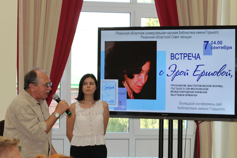 Открыла встречу директор областной универсальной научной библиотеки имени Горького, председатель Общественной палаты Рязанской области Наталья Николаевна Гришина. С Эрой Ершовой она познакомилась на одном из форумов, проходившем в Сочи. Её поразила и личность писательницы, и язык ее рассказов – образный, лаконичный и красивый, отметила Наталья Николаевна Гришина. Приглашение Эры Ершовой в Рязань стало продолжением знакомства.